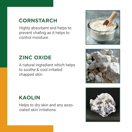 Moisture Control: Contains cornstarch, zinc oxide, and kaolin to keep skin dry and smooth.