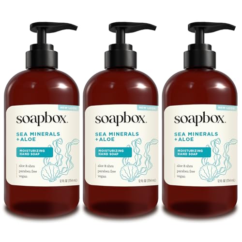 Soapbox Liquid Hand Soap, Sea Minerals & Blue Iris – Hand Soap for Bathroom and Kitchen, 12oz Pump Bottles (Pack of 3)