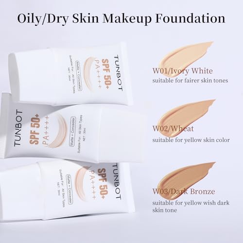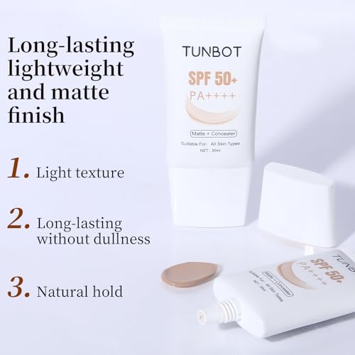 TUNBOT Long Lasting Concealer Foundation, SPF 50, Makeup to Cover Facial Imperfections, Unscented Foundation for All Skin Types (30ml)