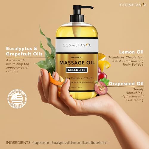 SPA QUALITY MASSAGE OIL- The Lemon essential oil included in our muscle rub oil will greatly stimulate your circulatory system which will assist in effectively transporting and removing toxin buildup.