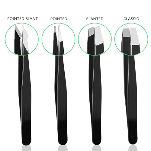 VERSATILE PRECISION TWEEZER SET: This set includes four essential tweezer styles – pointed, classic, slant, and pointed slant – providing you with a complete toolkit for various grooming and beauty needs.