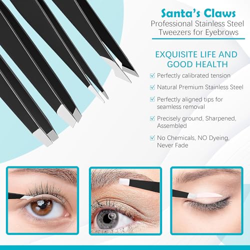 Tweezers for Women, Stocking Stuffers for Women Men Adults, Womens Gifts for Christmas White Elephant Gift Mom Santa Funny Stuffer Her Girls Teens Dad Mens, 4-Pack Tweezer Facial Hair Eyebrow Set